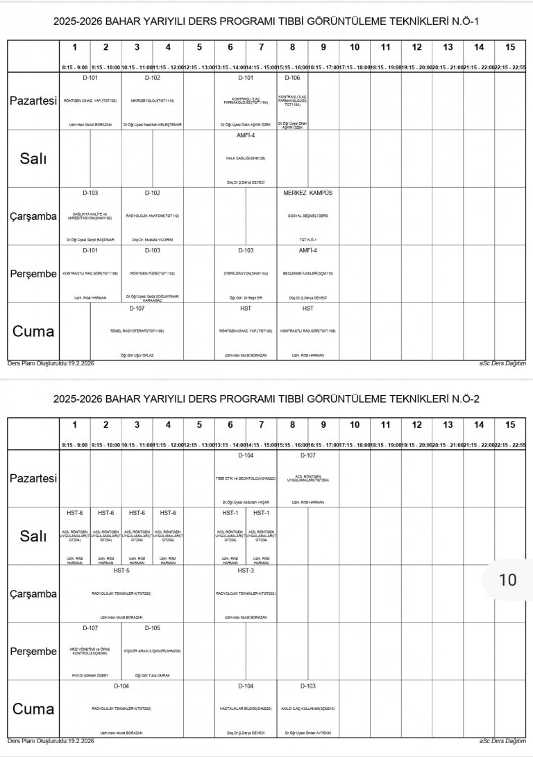 2025-2026 Eğitim Öğretim Yılı Bahar Dönemi Ders Programları
